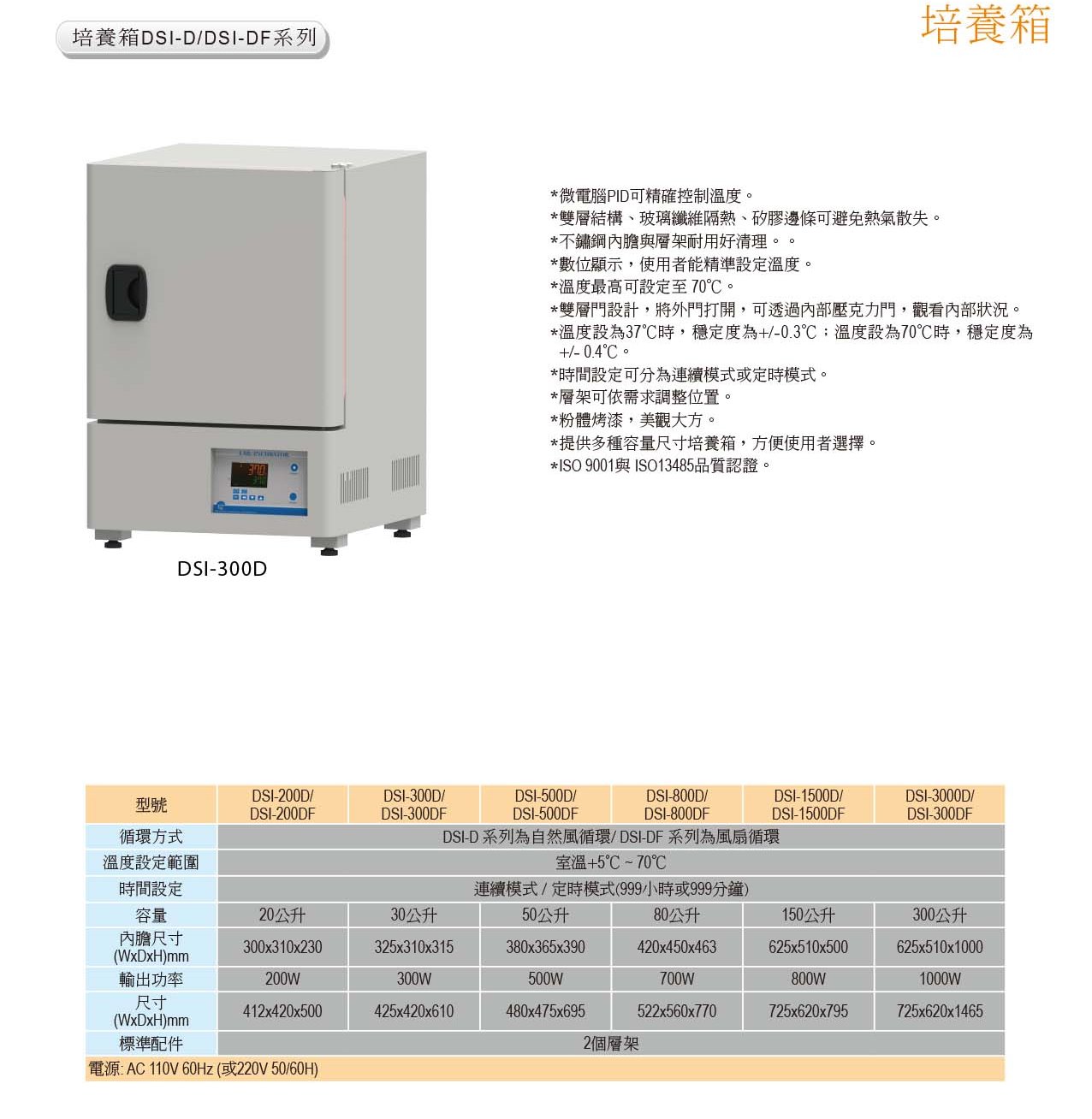 | 循環方式 | DSI-D 系列為自然風循環/ DSI-DF 系列為風扇循環 | |||||